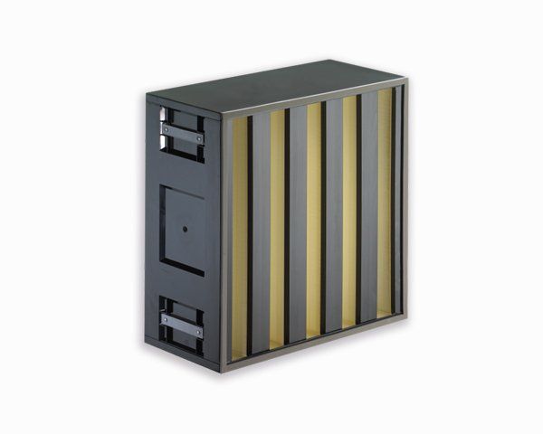 Dieses hocheffiziente Filter bietet eine V-förmige Konfiguration zur Handhabung hoher Luftströmungsgeschwindigkeiten bei besonders niedrigem Druckverlust.