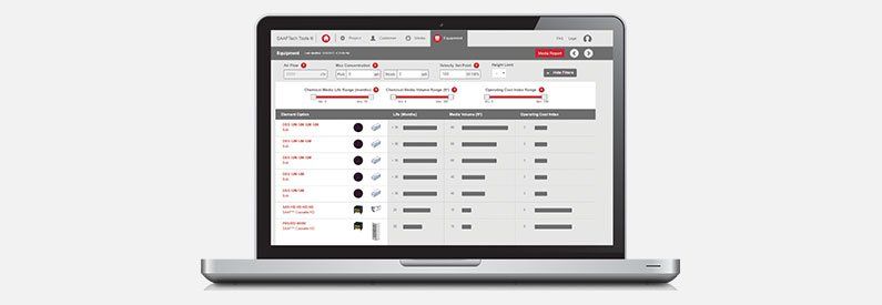 SAAF Tech Tools ist eine entscheidungswissenschaftliche Software für die Konfiguration von Reinluftprodukten zur Entfernung luftgetragener gasförmiger Verunreinigungen. Mit SAAF Tech Tools können die Experten von AAF International anwendungsspezifische Daten eingeben oder aus einer Liste von vordefinierten Anwendungen auswählen, um die Lösung für saubere Luft, die unsere Kunden benötigen, genau zu konfigurieren. Zudem stehen Informationen über Verunreinigungen, Adsorbtionsmittel, Oxidantionsmittel und Links zu branchenspezifischen Informationen für bestimmte Anwendungen zur Verfügung.